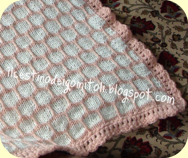La copertina è lavorata a maglia, con due colori per dare l'effetto grata......